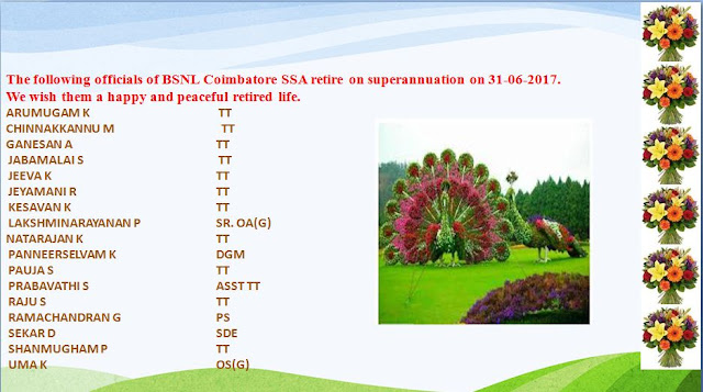 Greetings to all. It is heartening to see that daily one or two members are being added to the fold of Coimbatore District AIBSNLPWA Association. It shows the faith , the BSNL Pensioners are having up on us.