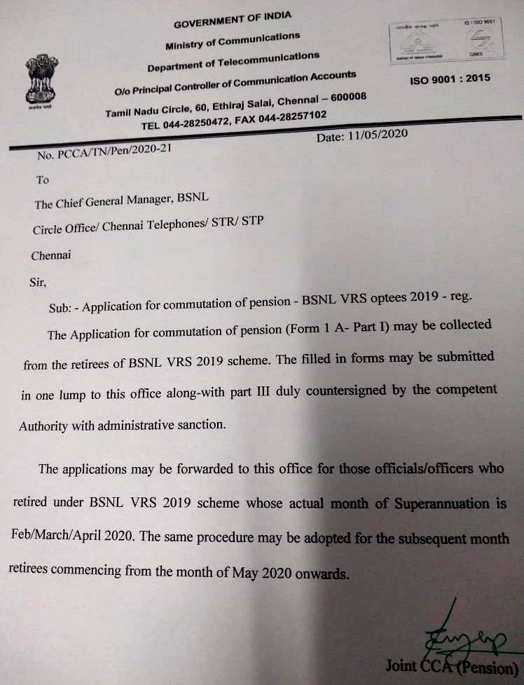 March, April 2020ல், 60 வயதைநிறைவுசெய்தவர்கள்சம்பந்தபட்ட BSNL அலுவலகத்தில் Form 1A – 1 கொடுக்கவேண்டும்.